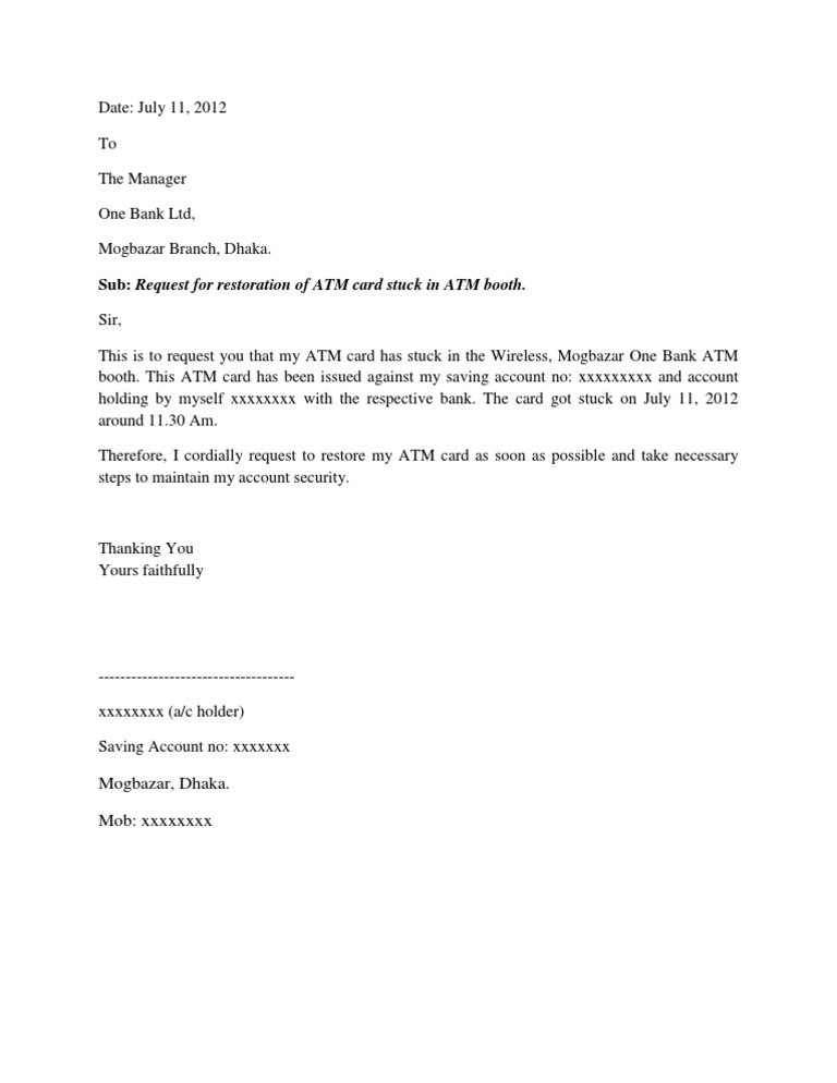 Respected sir/madam, i am an account of this bank and my account number is xxxxxxxxxxxx account number. Letter to bank manager in today's time, everyone has their bank account for their transactions. Let us check the details of how to if you do have access to internet banking, you can request for account statement via sbi missed. Respected sir/madam, i challa raghuram, account holder of your bank with savings bank a/c no. Get new passbook in sbi :