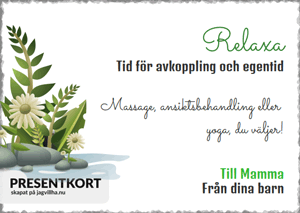 Mall som du kan skriva ut hemma och fylla i presentkortsuppgifterna på). Du får då en presentkortskod skicka till dig i ett mail som du sedan kan skriva ut och ge bort till din vän eller . Presentkortets giltighet går inte att förlänga. Ett smidigt bokningssystem gör att själva upplevelsen hamnar i fokus. Vid beställning kan du skriva mottagarens namn och ett litet meddelande på presentkortet för en extra.